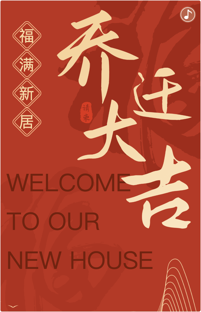 喜庆活泼版,乔迁大吉,福满新居?良辰吉日,喜迁新居!我们怀着无比喜悦的心情,诚邀您于XXXX年XX月XX日光临我们的新居,共同庆祝这一喜悦时刻!届时恭候您的光临!