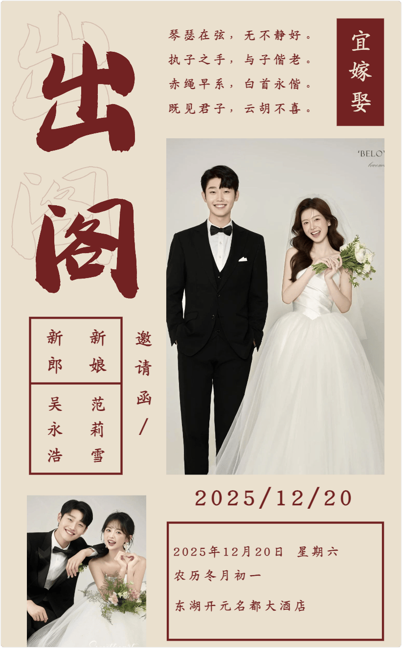 婚贝请柬精选10套大气的儿子结婚请帖邀请函电子版文案和女儿出嫁父母请客邀请函文案,助您轻松打造体面邀请函,让亲友透过字里行间,既见礼数周全,更感情意深长。