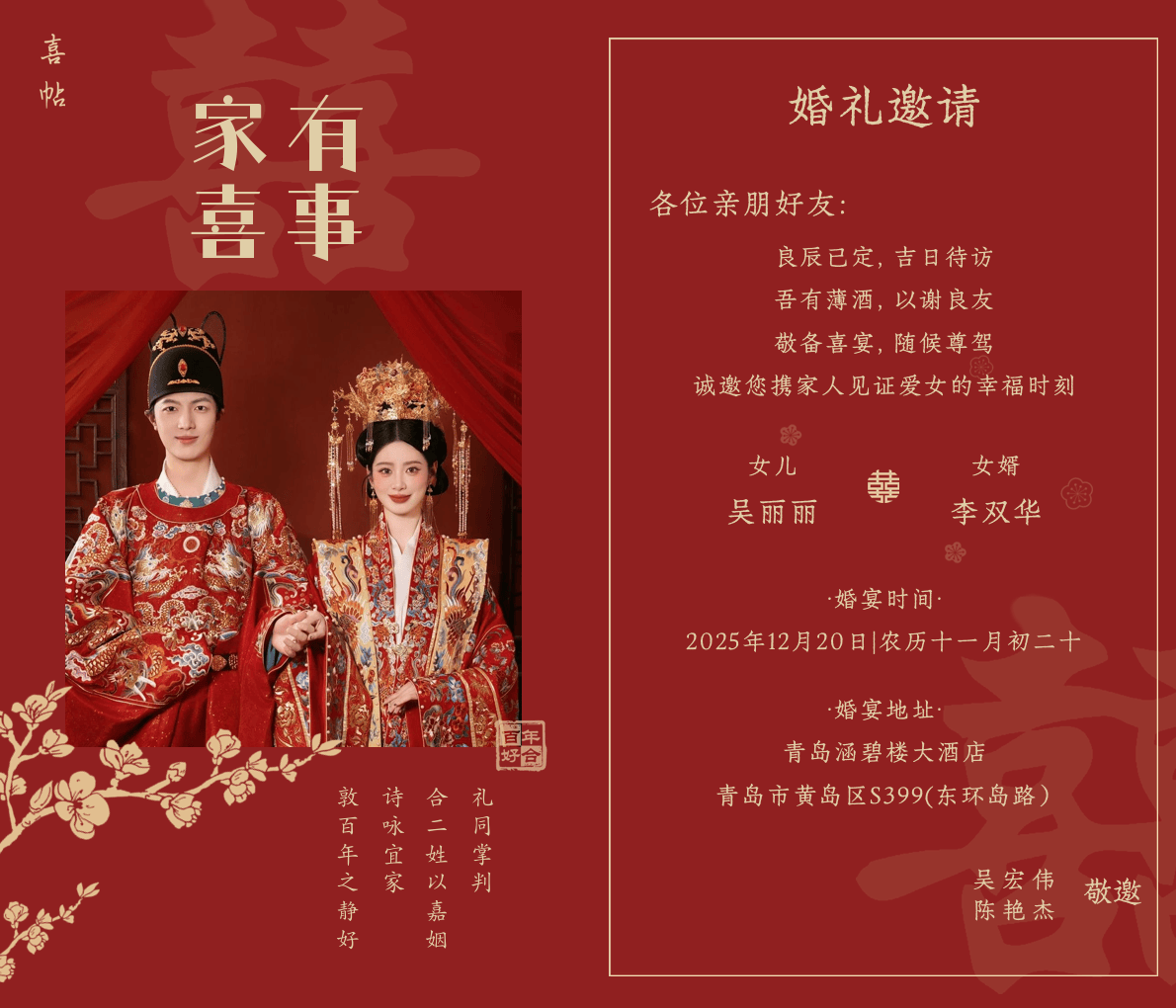 子女喜结连理,婚礼请帖是父母心尖上的家书,盛满祝福,更承载家族礼数。