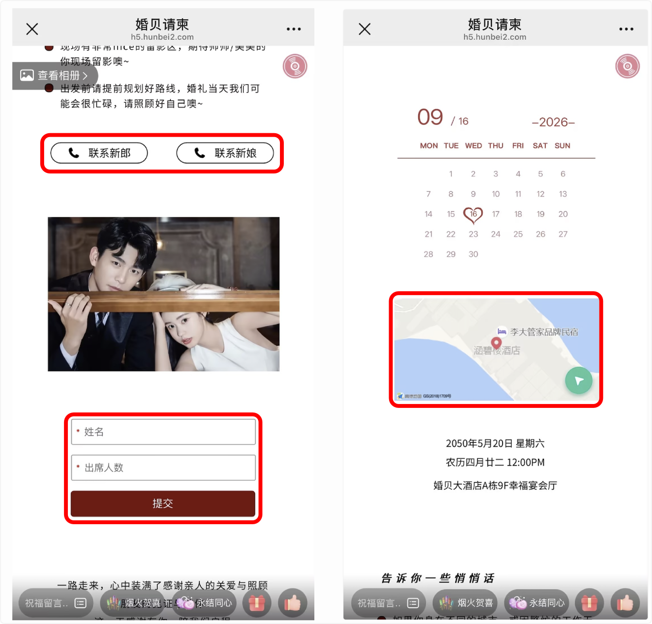 宾客赴宴、一键导航、一键拨号,高效实用功能,真挚邀请。