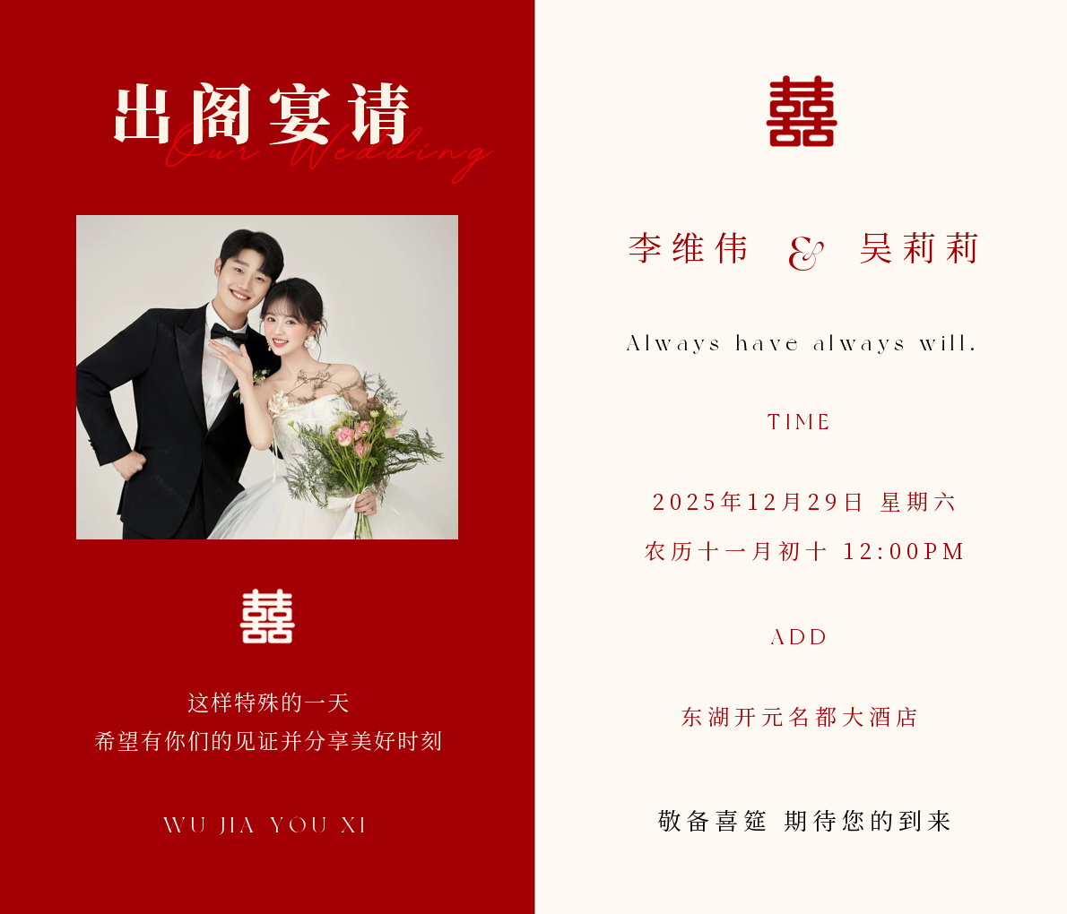 让每一位新人都能轻松快速制作出电子请柬,为您的特殊日子增添更多美好回忆。无论是传统的婚礼邀请,还是各类生活庆典,这里都有适合您的解决方案,让邀请过程变得简单,让婚礼更有温度。