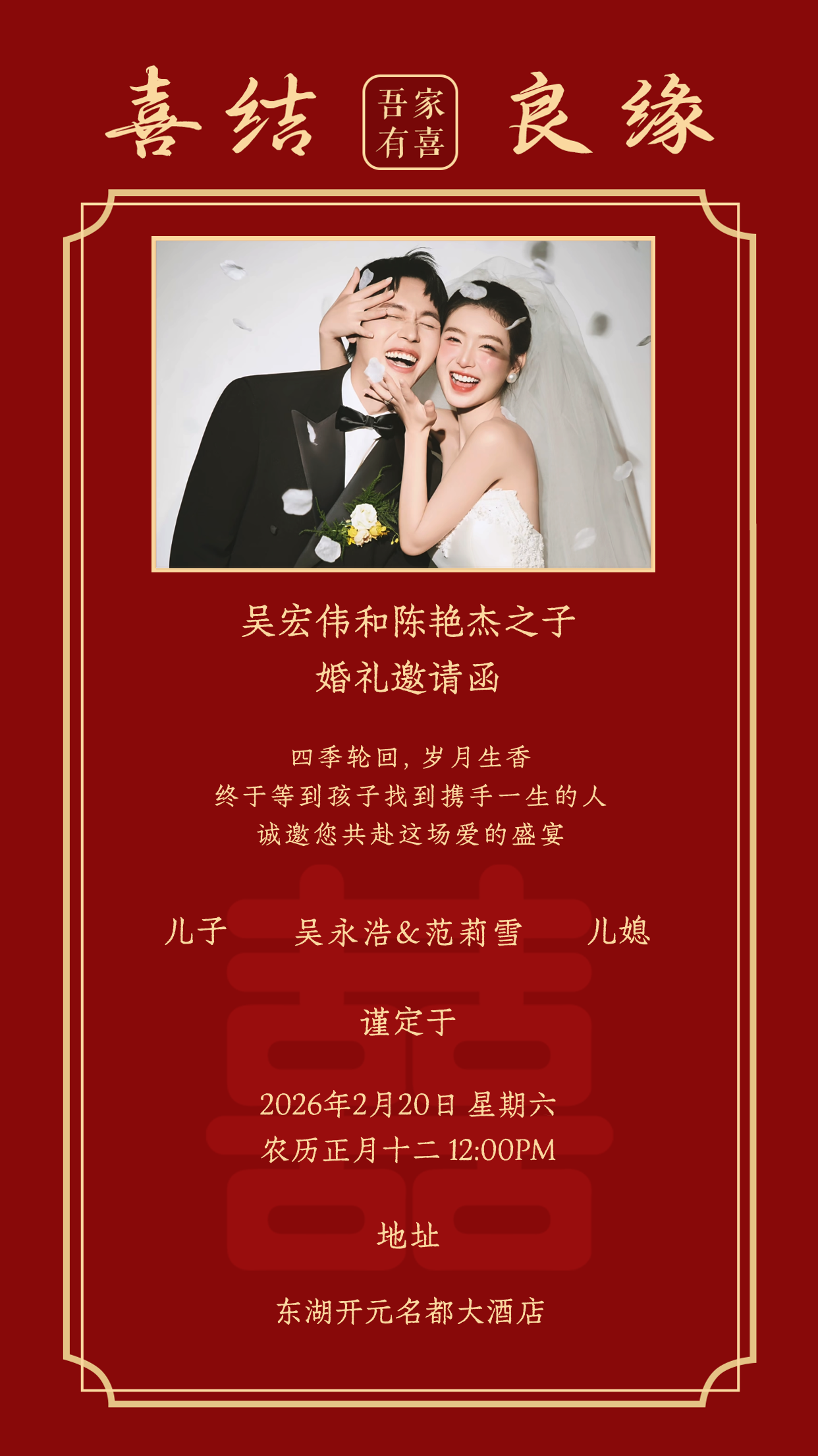 诚挚邀请您见证儿子儿媳的幸福