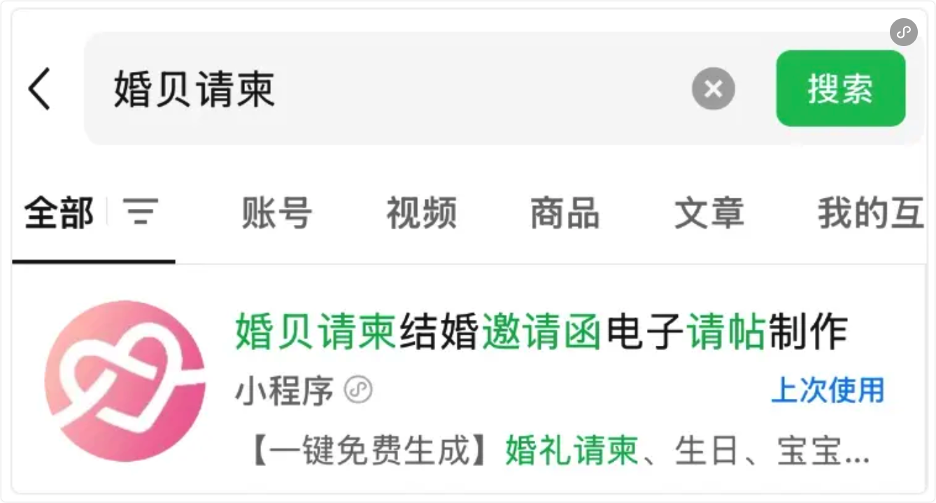打开微信搜索“婚贝请柬”,点击小程序并进入。