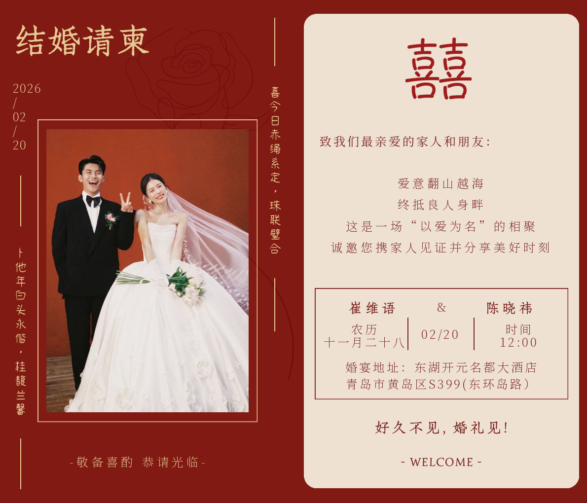 亲爱的你好,今天是个特别的日子,是我们即将陪伴彼此,奔赴未来的开始。