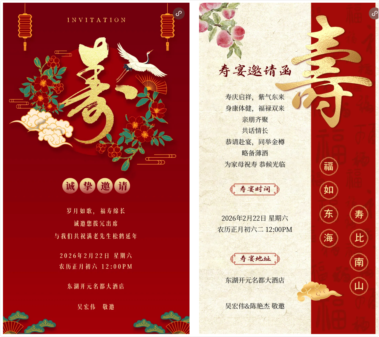 寿宴时间:2026年2月22 中午12:00
