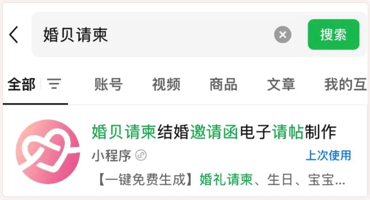 打开微信搜索“婚贝请柬”,点击小程序并进入。