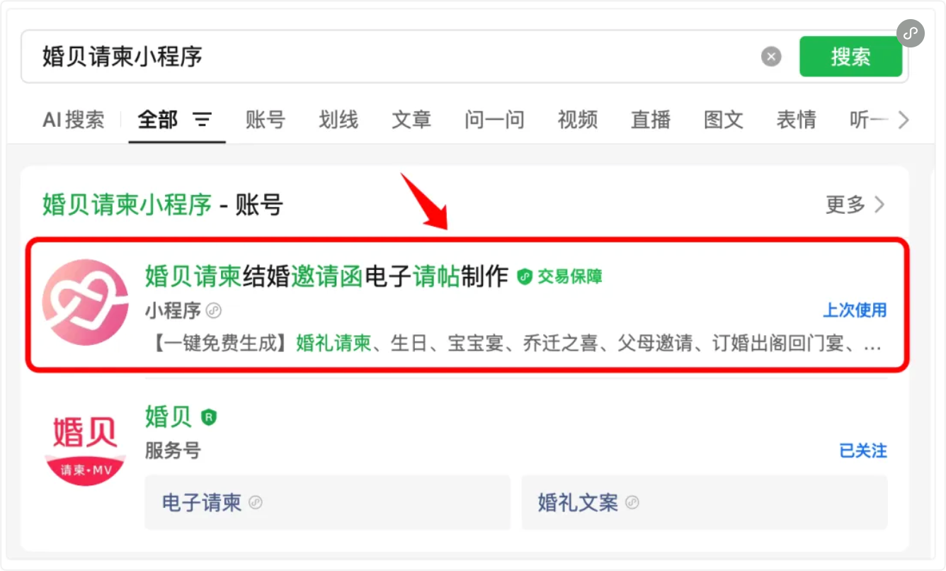 在微信搜索框搜“婚贝请柬小程序”,点进来就行。